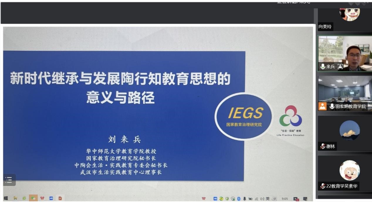 (文、图/向美玲 审核/程永洲)12月1日上午9时,我院第二十九讲九思讲坛以线上方式举行。中陶会生活·实践教育专委会秘书长、华中师范大学教育学院刘来兵教授做了题为《新时代继承与发展陶行知教育思想的意义与路径》的精彩报告。报告由程永洲博士主持。