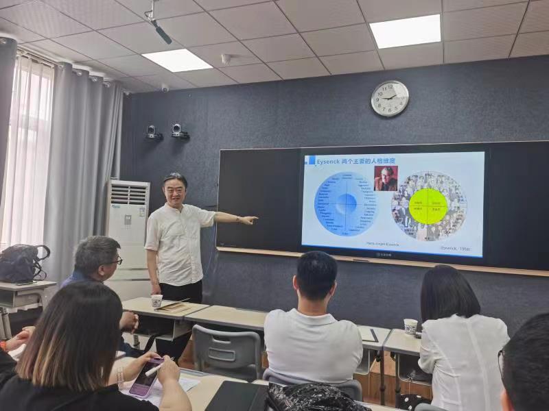 讲座伊始,郭永玉教授以百度副总裁的发言出发,介绍了管理心理学的分类,又以艾森克两个主要的人格维度为切入点,深度探讨了“两维度四类型框架”的科学性和系统性,并强调了该框架的重要研究价值。郭教授用两维度四类型框架对心理学常见的理论进行了分析,从普通心理学、发展心理学、教育心理学、文化心理学与政治心理学等学科中举例说明两维度四类型框架在心理学研究中的广泛应用,分别介绍了斯金纳的强化理论、成人依恋理论、青少年统一性发展类型模型等理论。