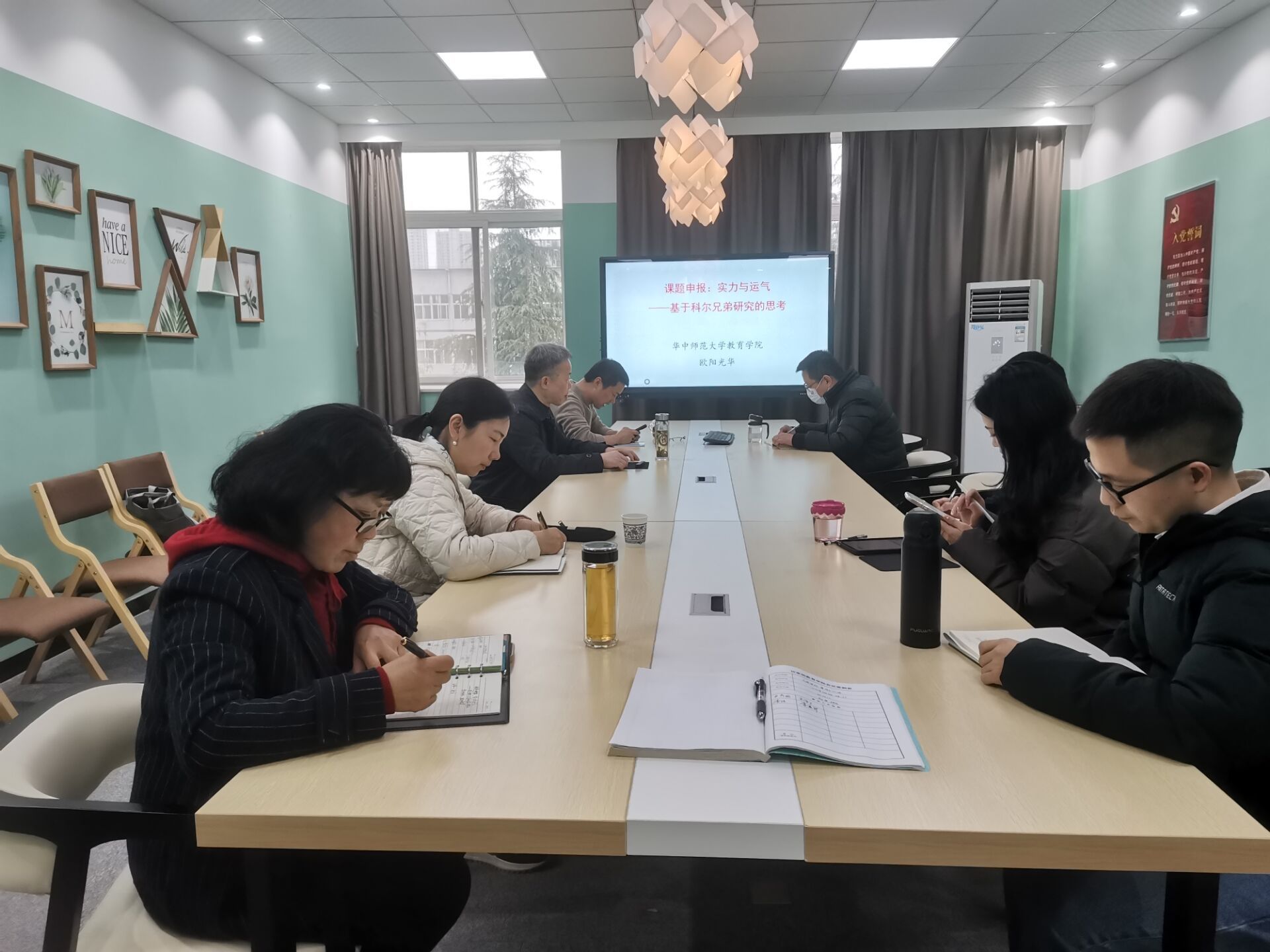 (文/杨黎明 图/陈晓秋)3月3日上午,九思讲坛第四十八讲在W1515举行。华中师范大学高等教育研究所所长欧阳光华教授应邀做客,为我院专任教师作了题为《课题申报:实力与运气——基于科尔兄弟研究的思考》的学术报告。报告由学院院长赵军主持。