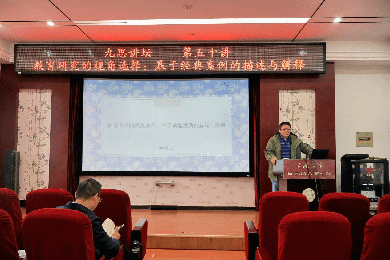 (图、文/江欣怡)11月10日上午,第五十期九思讲坛在W1509举行。湖南师范大学李爱良教授应邀做客,为我院师生作了题为《教育研究的视角选择:基于经典案例的描述与解释》的学术报告。报告由田家炳教育学院副院长杨黎明主持。